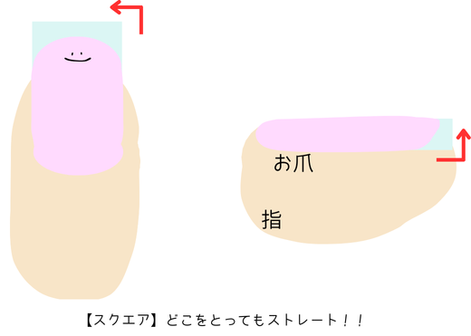 そのため、完璧なスクエアは長さ出しをしたい方やネイルを目立たせたい方にお勧めです!!