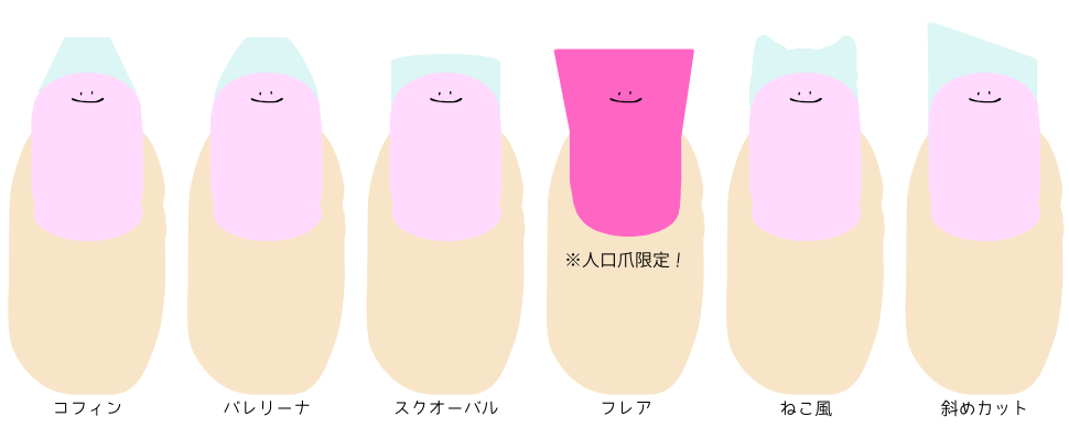 実は爪の形にはいくつか種類があり、この形選びは重要です。