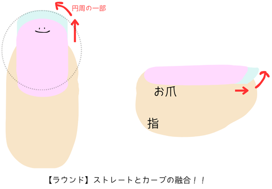 ラウンドとは、先端は丸みを帯びているもののサイドはまっすぐなラインのお爪の形を言います!