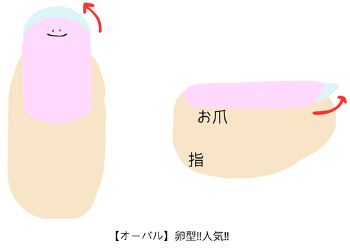 オーバルとは、先端を卵型に整えた形で、側面から見てもお爪の形がカーブしているような形のことを言います。