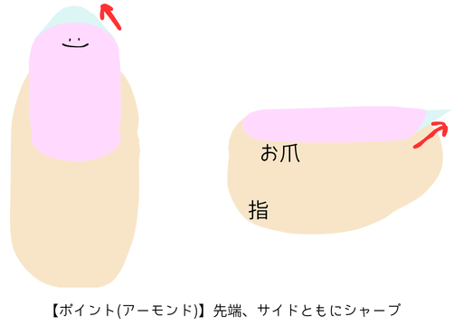 ポイントとは、お爪の先端も側面もシャープな形のお爪のことを言い、その形状からアーモンドと呼ばれることもあります。