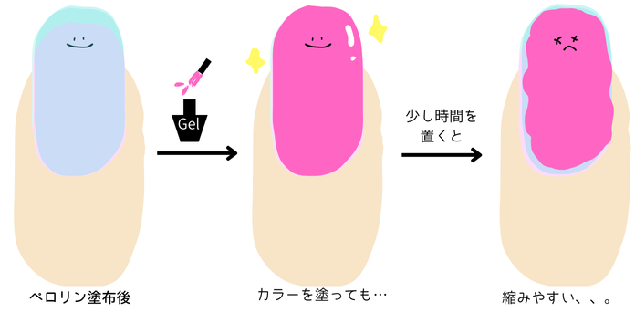 ピールオフジェルであるペロリンにベースジェルを重なる理由は以下の通り。