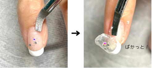 そもそもパカっとオフできる状態とはどういうものなのかというと、そのままチップがぽろっと取れるかのようにジェルが取れてくれる状態を言います。