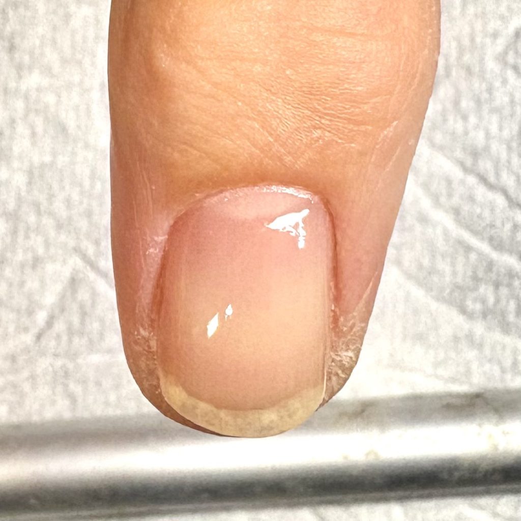 このお爪のサイド、先端、根本というのは通常のジェルでも浮きやすい箇所であるため、ピールオフジェルを仕込んでしまうとさらに浮きを加速してしまいます。