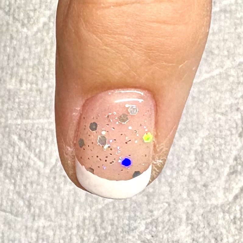 このジェルはサンディングジェルの中でも比較的オフがしやすいジェルなので、ピールオフジェルを仕込むジェルネイルにもってこい。